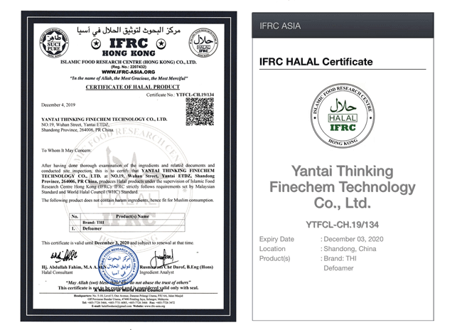 恒鑫化工消泡劑系列產(chǎn)品于2019年12月4日通過了HALAL認證并取得了HALAL證書。清真認證即HALAL認證,符合穆斯林生活習(xí)慣和需求的食品、藥品、化妝品以及食品、藥品、化妝品添加劑。